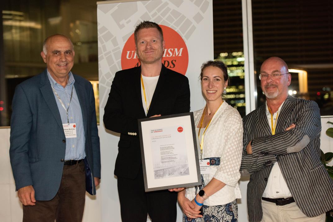 Wethouder Rutger Dijksterhuis (Ruimtelijke ordening) nam de Urbanism Award in ontvangst (foto door Academy of Urbanism).