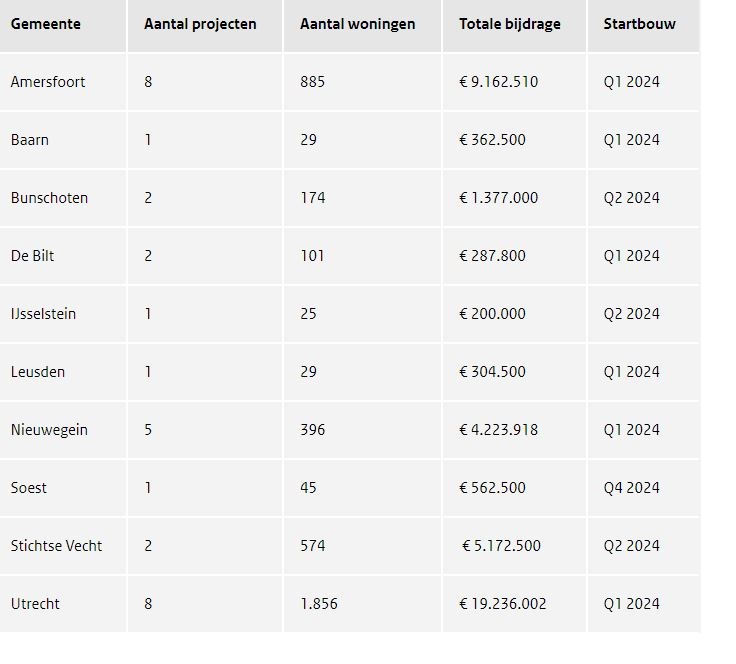 De start van de bouw van al deze projecten is voorzien in 2024 maar door de economische tegenwind staat de planning onder druk. Deze financiële impuls van het Rijk is een welkome duw in de rug voor onze gemeenten om de woningbouw op gang te houden. Het brengt de realisering van onze woondeals weer een stap dichterbij. Zo blijven we in de Metropoolregio Utrecht doorbouwen aan gezonde verstedelijking en bieden we perspectief aan de vele mensen die uitkijken naar een passende woning in onze regio.