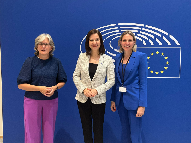Van links naar rechts: Marieke Schouten (wethouder Nieuwegein), Eurocommissaris Ivanova (Onderzoek en Innovatie), Mirjam Sterk (gedeputeerde portefeuille Europa)